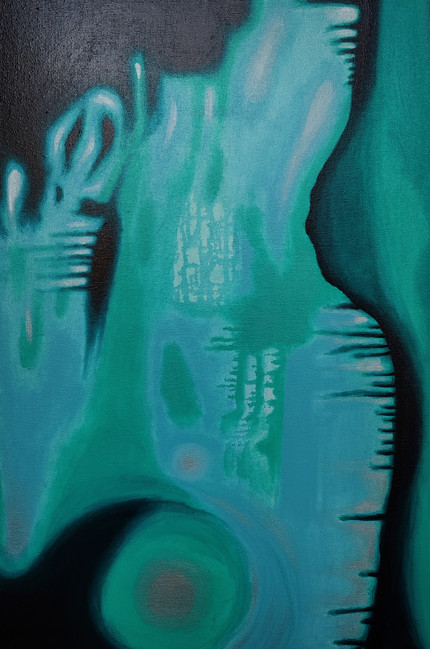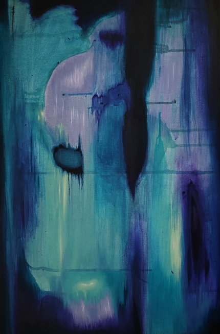 Naylor often begins with a black canvas, gradually building layers of acrylic, watercolour, and ink. This process of layering mirrors emotional depth, translating feelings like anxiety and depression into visual textures and colours. She draws inspiration from the movement of water and natural landscapes, exploring the balance between light and dark as a reflection of emotional journeys.